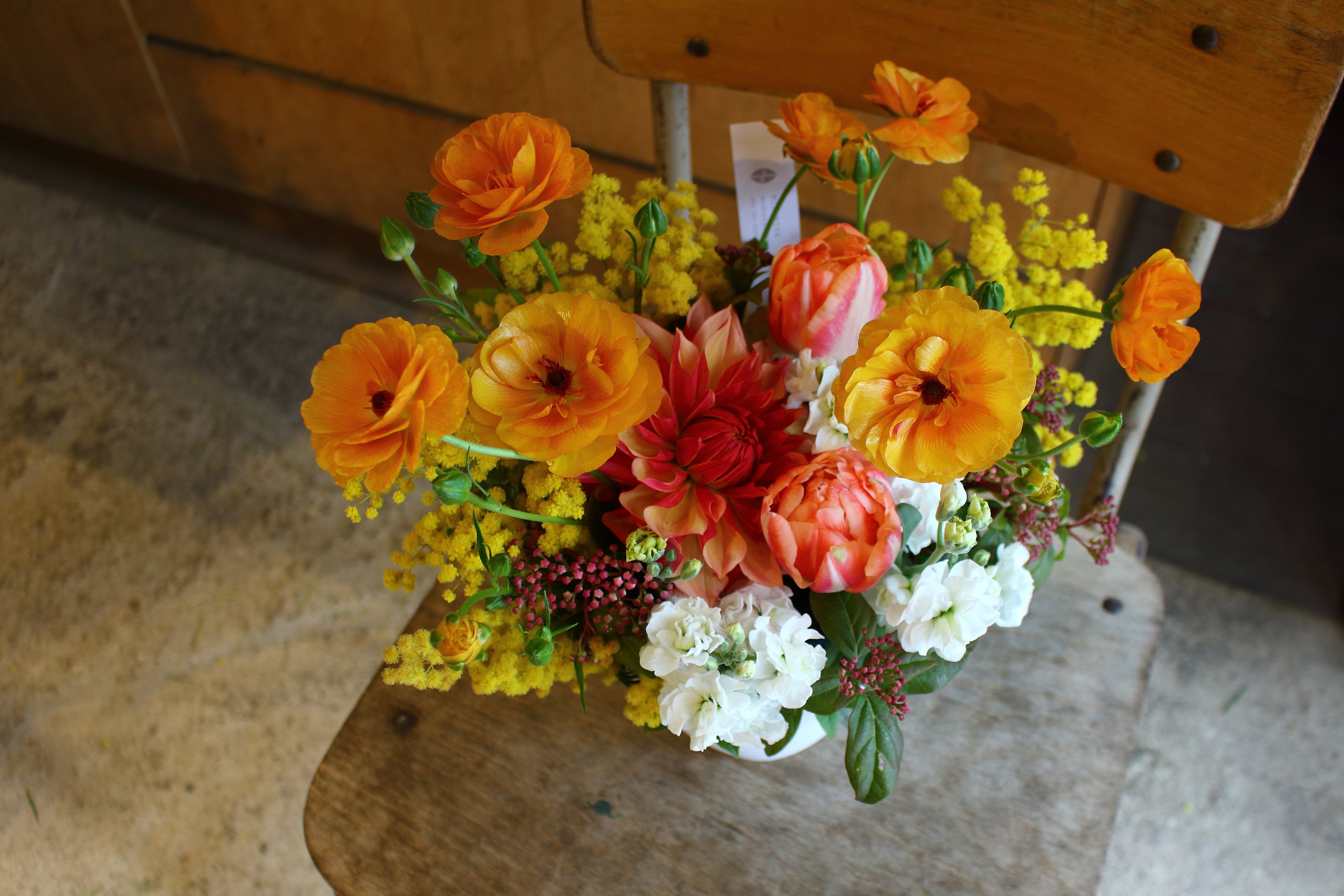 その時期の良質なお花をメインとし、相性の良いグリーンや小花を厳選しアレンジさせていただきます。